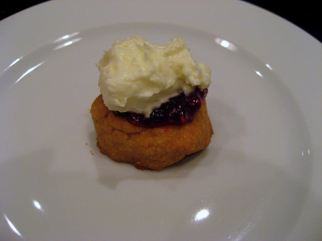 Once the shortbread is done, remove from oven, gently place each piece of shortbread on a place and scoop a dab of raspberry jam for the center.