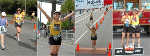 When I returned to the Bay Area I saw an MD, who said I would never run the marathon…like I would go through all that training again another time. Sharon is a chiropractor. She worked on my leg, along with an acupuncturist and an osteopath and on the day of the marathon I ran the 26.2 miles….in 7 hours and 48 minutes. (Thank you Sharon for begging the officials to keep the finish line up until I ran in). I wouldn’t have missed that high, that feeling of accomplishment for anything.