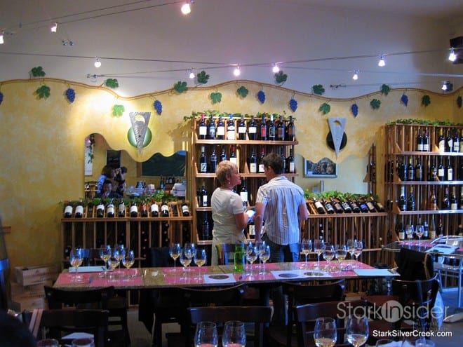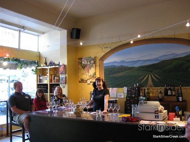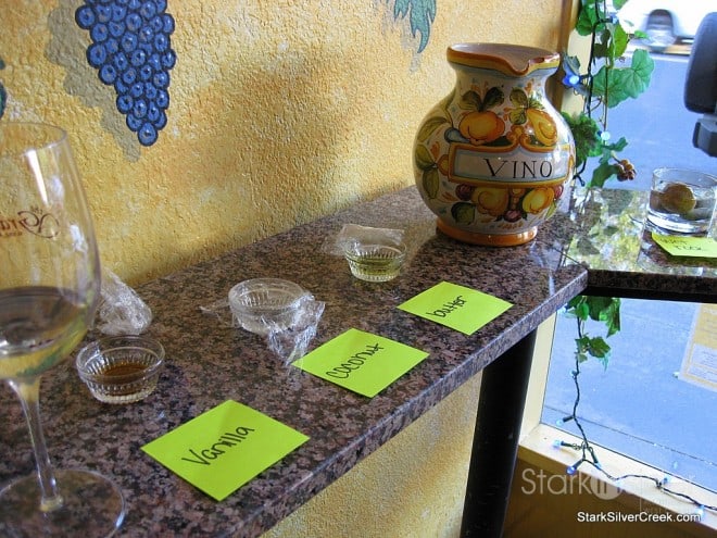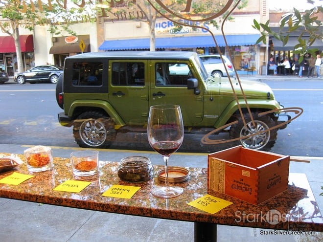 Valerie Evans, a Certified Sommelier, took over the wine bar recently and has built up quite a local following with her popular events that span from entertaining to educational in the world of wine. On this particular evening, we were signed up for an educational adventure in component tasting ($35/student, $25/club member).