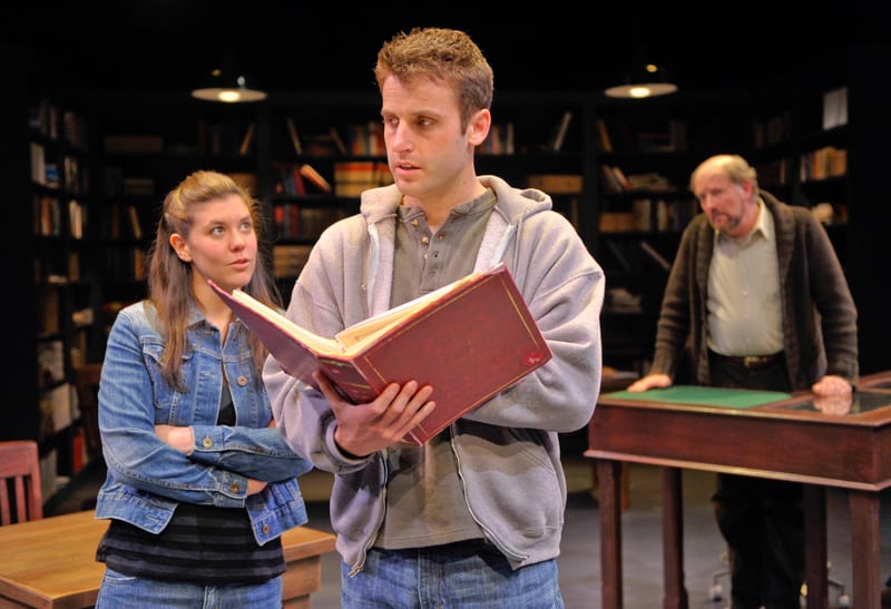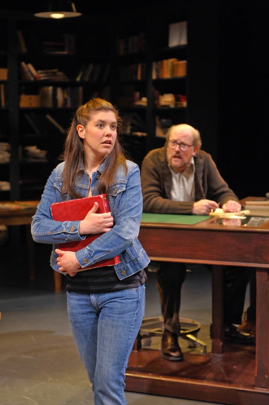 The casting is ideal, with strong performance across the board. The timing and chemistry are also top notch. The play takes place primarily in the stamp shop with bookshelves in the background. Thanks to the intimate design of the Magic Theatre, the audience is right there, almost a participant.