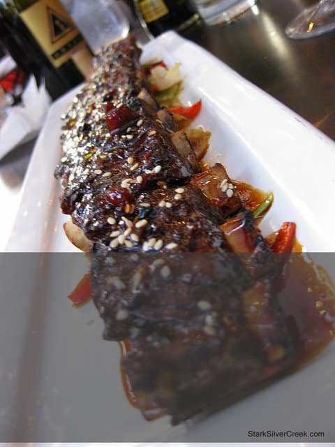 short-ribs. I ordered the latter because the guava glazed sticky pork ribs from my last visit was looking forward to a similar experience. The spanish pork roast was flavorful and tender and the apricot added a wonderful sweetness. I loved the sauce on the ribs but the outside of the ribs were a little too tough in some spots for my liking. Once you get past the exterior, the meat was tender and juicy.