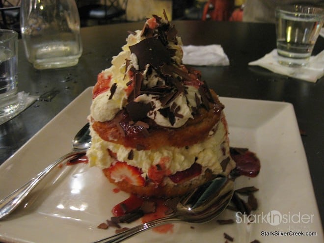Finally dessert came around and we were tempted to order the Strawberry Shortcake ($7) and the Coffee Toffee Pie ($8 – layers of oreo, toffee, chocolate cake and layers of coffee ice cream). Both desserts were enormously delicious and a wonderful way to end the meal.