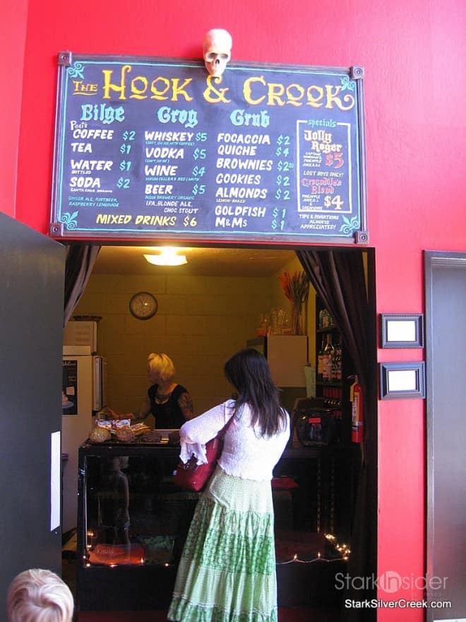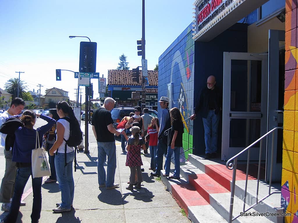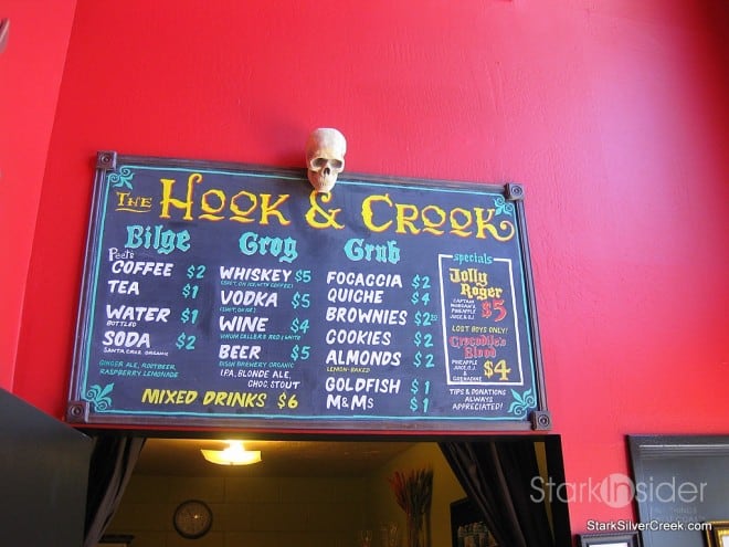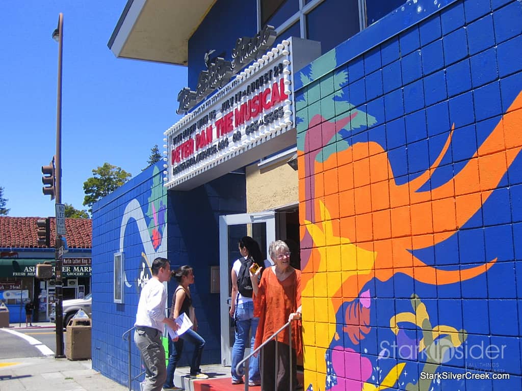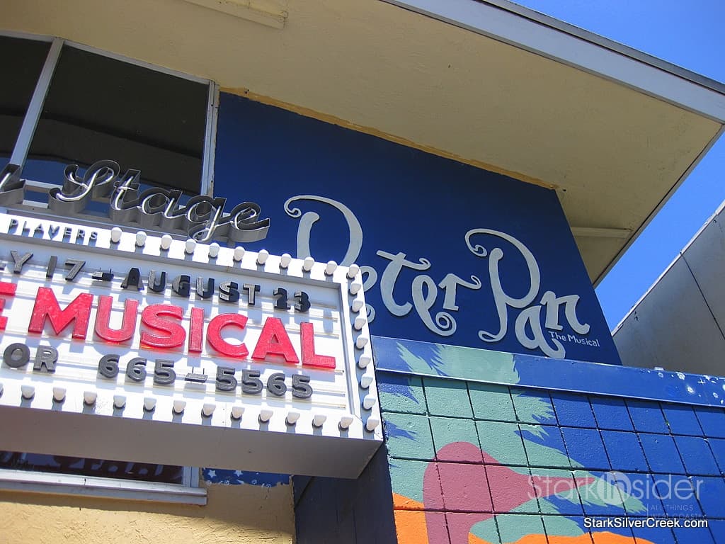 The moment I set eyes on the Ashby Stage for the Berkeley Playhouse presentation of ‘Peter Pan – The Musical’, I was intrigued. The building is hard to miss with its technicolor façade of cobalt blue, fiery orange and eye-popping yellow. The gentleman with a stylish hat collecting the tickets and “The Hook & Crook” refreshment sign with skull above that greeted us only heighten my imagination.