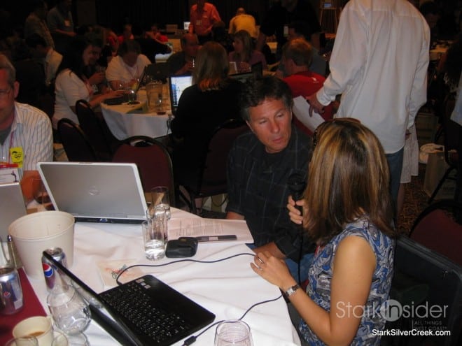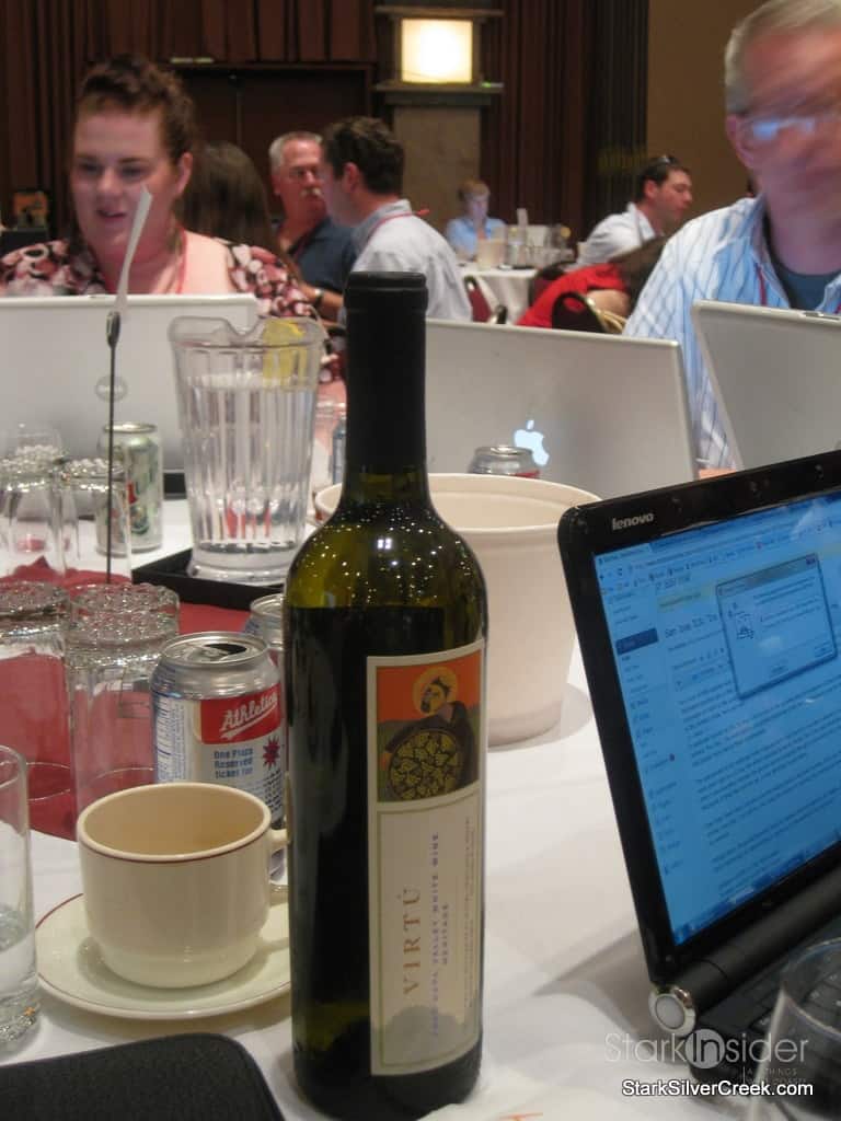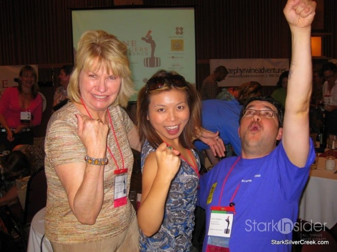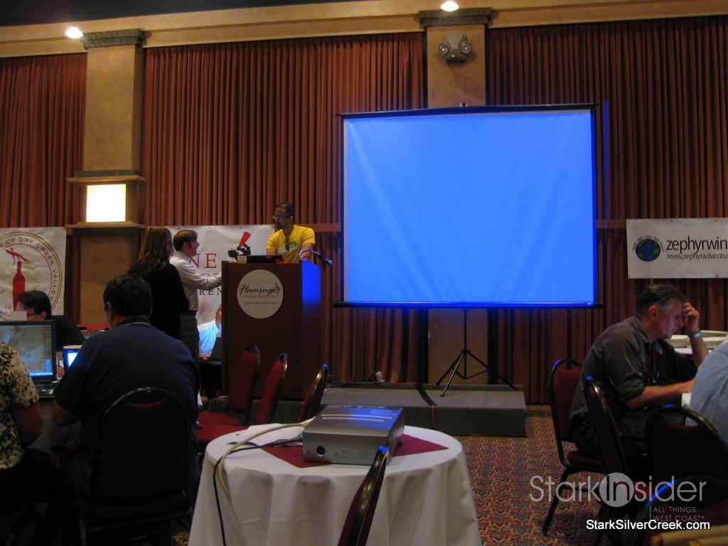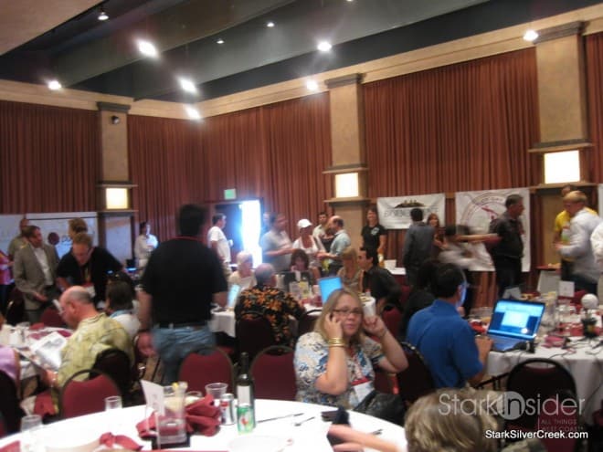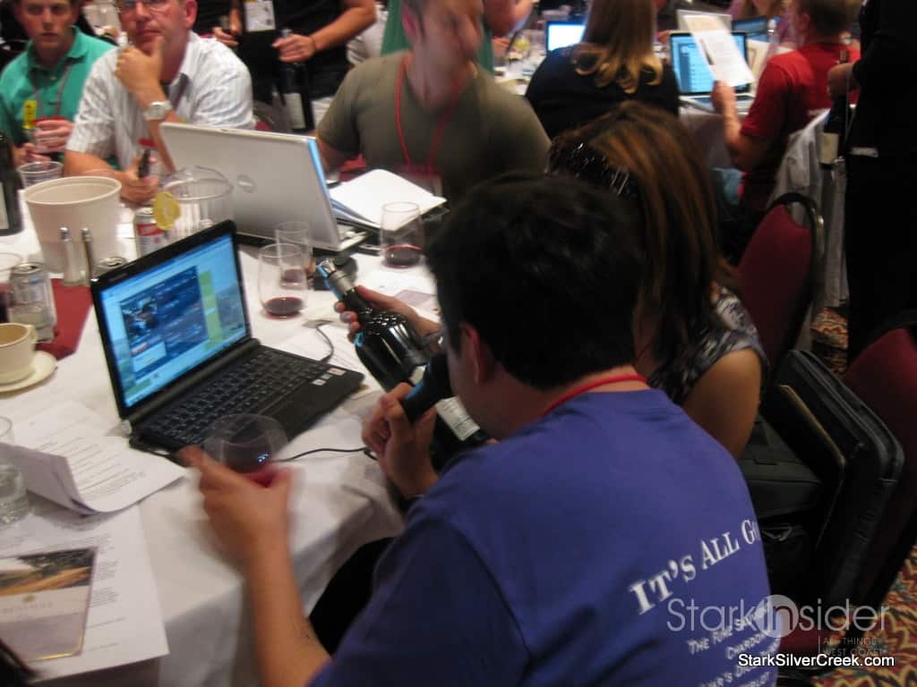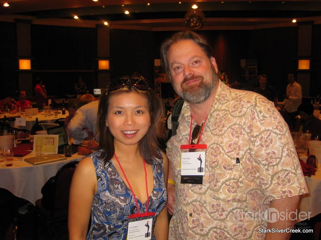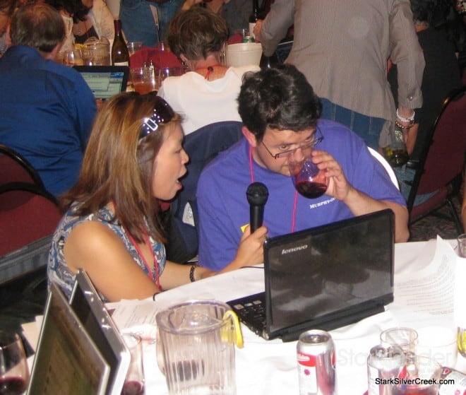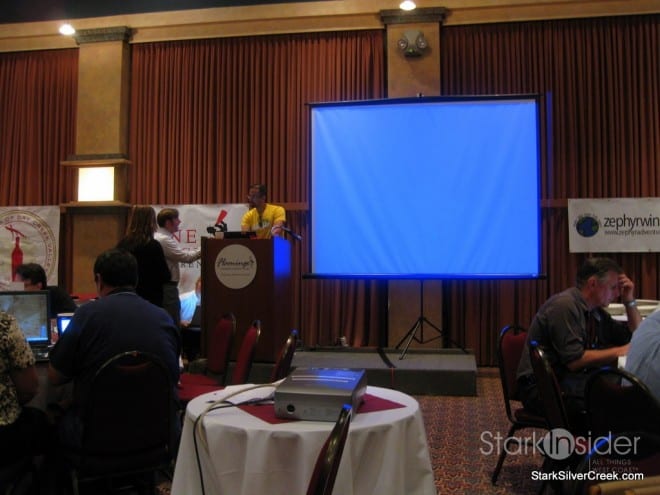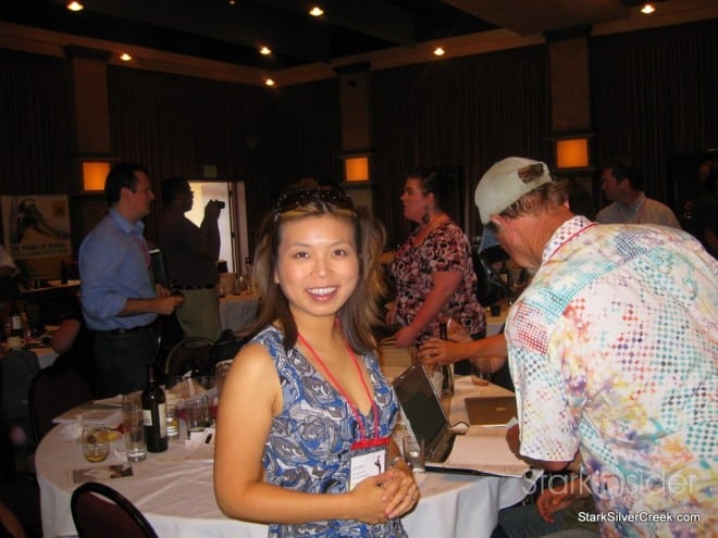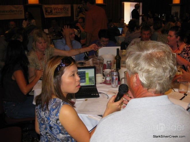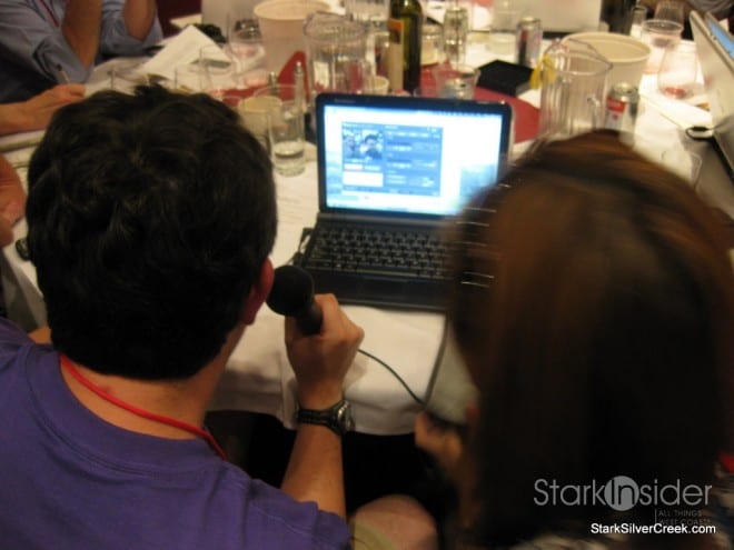 Clint and I emerged triumphant in our live videocasting experiment during the two hour long wine-tasting à la “speed-dating” style. There were about 22 circular tables with attendees and in 6 minute intervals, winemakers and winery owners would rotate amongst the tables, introduce their wines and offer a tasting for those at the table.