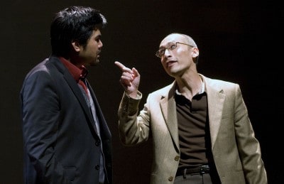 Francis Jue and Pun Bandhu were crowd favorites. Francis received a rousing response during the curtain call. And justifiably so. He commands the stage, emotes with seasoned control and elevates those around him. Once warmed, Pun zigged and zagged across the stage, pulling his spiky hair. His expressions were priceless, especially when accused of being a “fake Asian.”