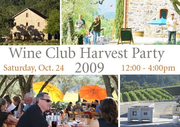 Come out to the Old Olive Grove and celebrate another successful harvest with us. Now that the clatter of harvest is fading into Autumn, and the 2009 vintage is safe in the confines of oak barrels, it’s time to pay homage to the wine god, Bauccus, Mother Nature, Dr. Rudolf Steiner, and all else responsible for another successful vintage here at Ehlers Estate.