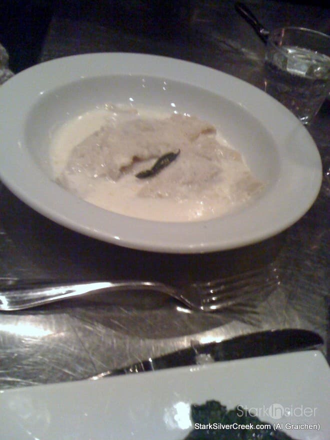 Everything was very good. We started with a 2004 Cerbaione (Merlot like) and a cheese plate. The cheese plate came with a huge portion of honeycomb. It was actually 2-3 time the size of the portion we had been served at another bistro. In addition to the honeycomb, toasted almonds were provided along with a very tasty pita bread.