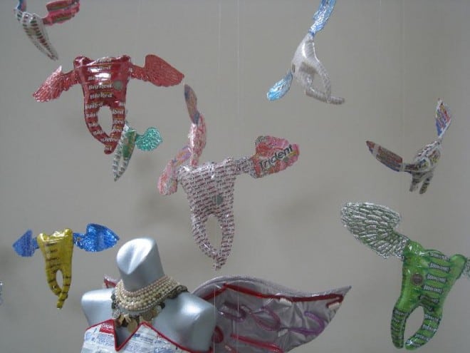 Now on view through January 23rd, Afterlife – a group exhibition of works created to breathe new life into recycled materials and objects. Kids and grown-ups will be inspired by larger-than-life scrappy creatures, re-purposed buttons and books, re-upholstered upholstery, re-wrapped wrappers, plastic bags re-imagined, a ginormous paper house, and much more. You might even re-think re-gifting after viewing this re-markable show.