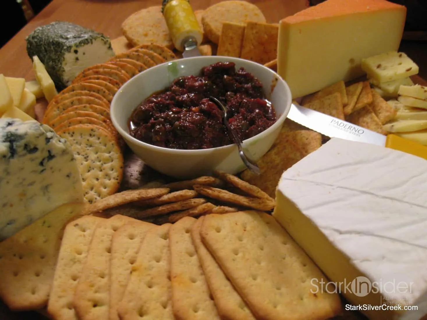 A cheese plate is always a welcomed addition to any potluck table. Something tart or sweet like fig preserve jam is a nice touch to balance some of the saltiness and textures of the cheeses. For hard cheese selections, if you don’t have sharp cheese knives or a lot of children at the pot luck, you may want to consider slicing it ahead of time so that guests can easily pick up a piece and place on a cracker without endangering themselves or the plate the cheese is on. If you have a couple of less common place cheeses, markers with the cheese name on them is helpful as well. If you don’t have the fancy ones from a gourmet cook’s store, simple card stock paper taped to a toothpick does the job.