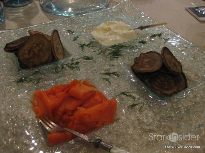 It was the perfect spot for some smoked salmon, cream cheese and dill on top of blinis paired with white wine. The little pancakes were the perfect base for the saltiness of the salmon and the sweetness of the cream cheese.