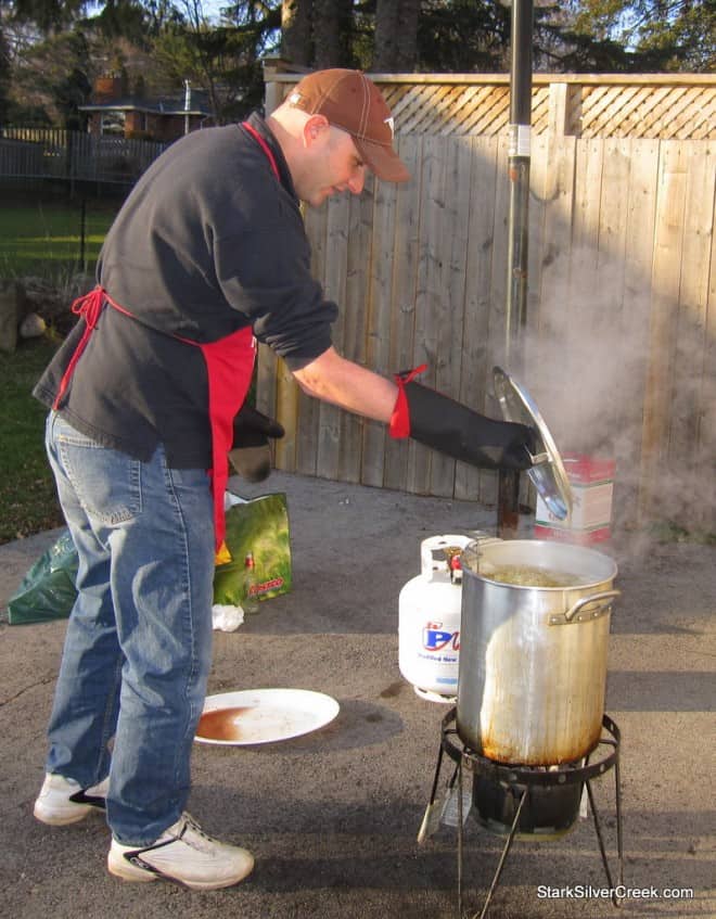 Yesterday, I posted an entry on the fate of our Christmas turkey entitled “Holiday Eats: One turkey’s journey from oven to table“. As a follow on, Patterson, a reader and occasional contributor to StarkSilverCreek, sent in photos from another recent turkey dinner. On that particular occasion, the turkey was fried instead of roasted.
