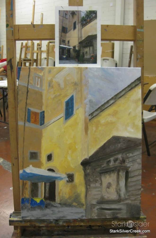 I’ve started my fourth oil painting that is based on a photo I took while walking the streets of Rome, Italy.