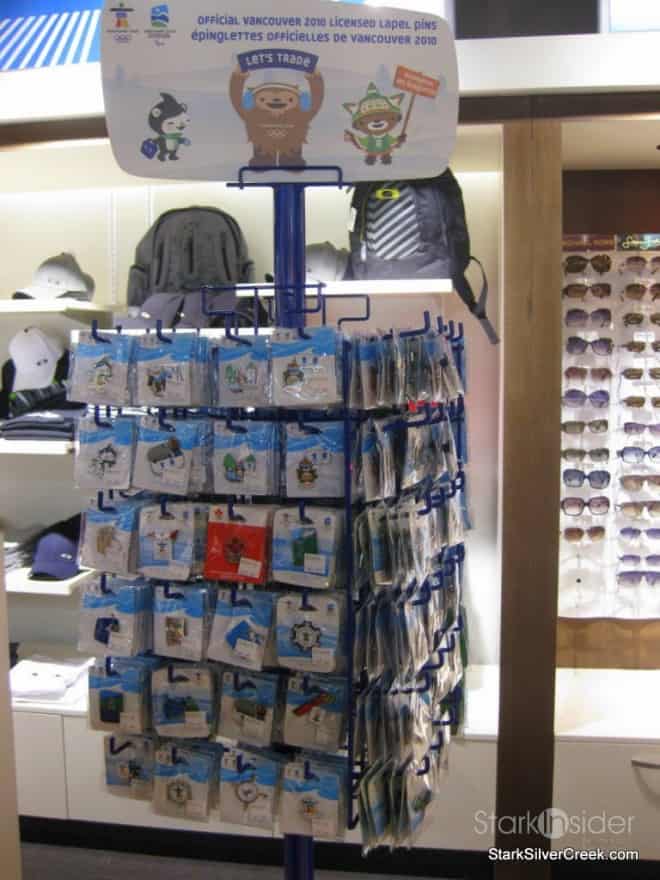 The selection is not as complete as the online 2010 Vancouver Olympic store, but for instant gratification less shipping its a good option. I noted that the pins and key chains are the same price at the airport store as online. Even Swatch has gotten into the action with 2010 Vancouver Olympic watches.