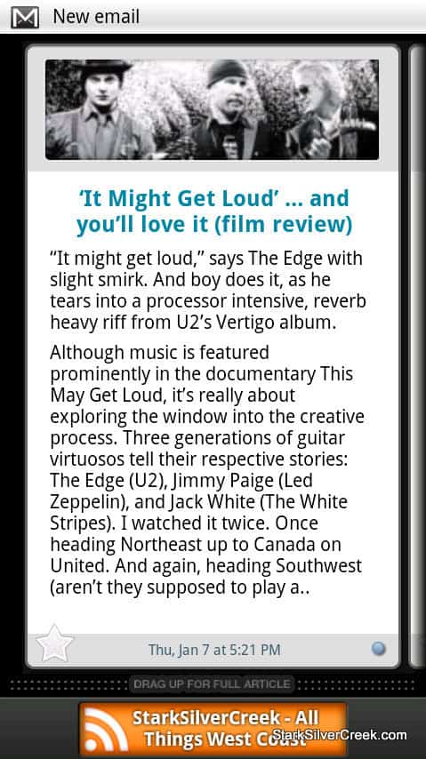 It’s one of the best RSS readers for Android and I use it everyday on my trusty Droid. It costs $4.99.