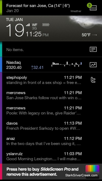 The main focus is on keeping you up-to-date on all that is happening in your world on one home screen. Little icons alert you to new emails, messages, missed calls, and more. But is SlideScreen ready to be my full-time user interface? I installed on it my Droid and gave it a go.
