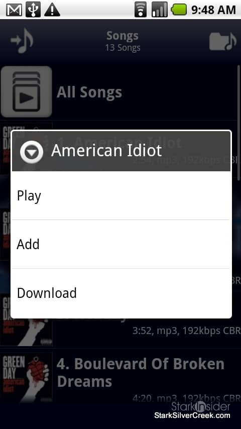 All that alone would make Squeeze Commander decent, but the developer went even further. Want to bring a song with you? Simply download it from the server to your SD card on the Droid using a long press. Also, it supports multiple players and servers, can connect to MySqueezeBox.com, support apps. Another clever feature: the system can auto mute when you receive a call on the phone.