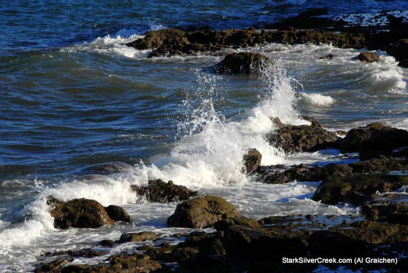 The wind brought with it some dramatic scenes along the shore. The waves crashed into the rocky shore below the 3-tier elevated tee on the golf course. Talking with some people in town, we were told that the blue whales have been spotted south of Carmen. The wind and the constant contractors kept us off the water this past month, but I’m hoping for some time out there in the next few weeks.