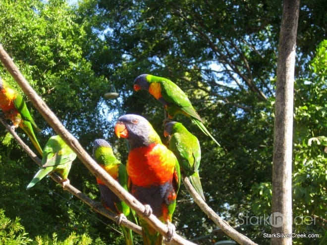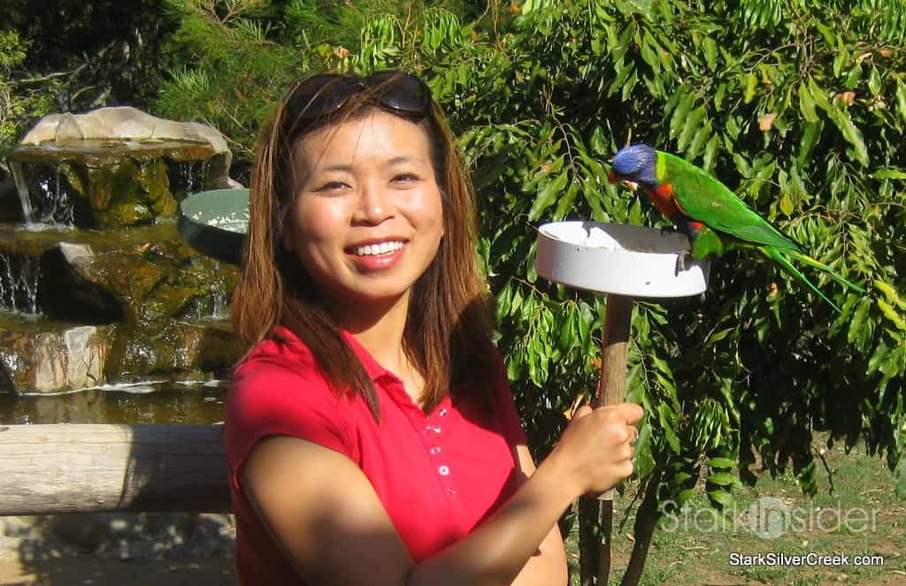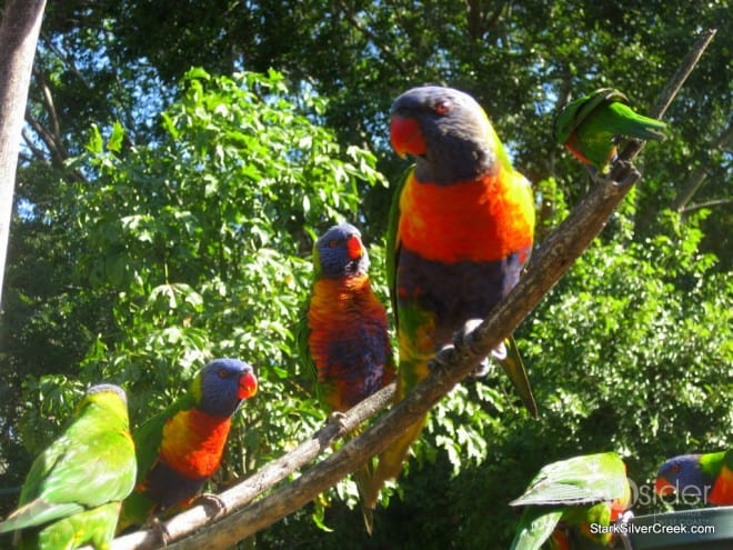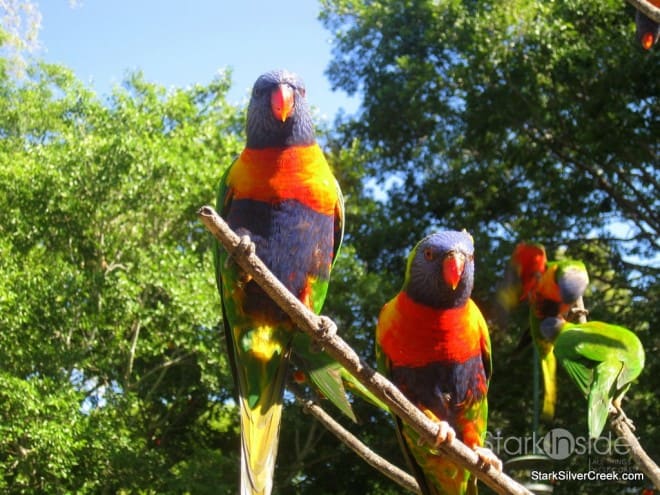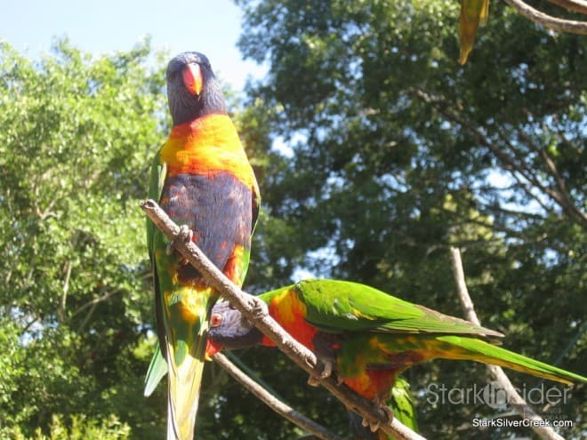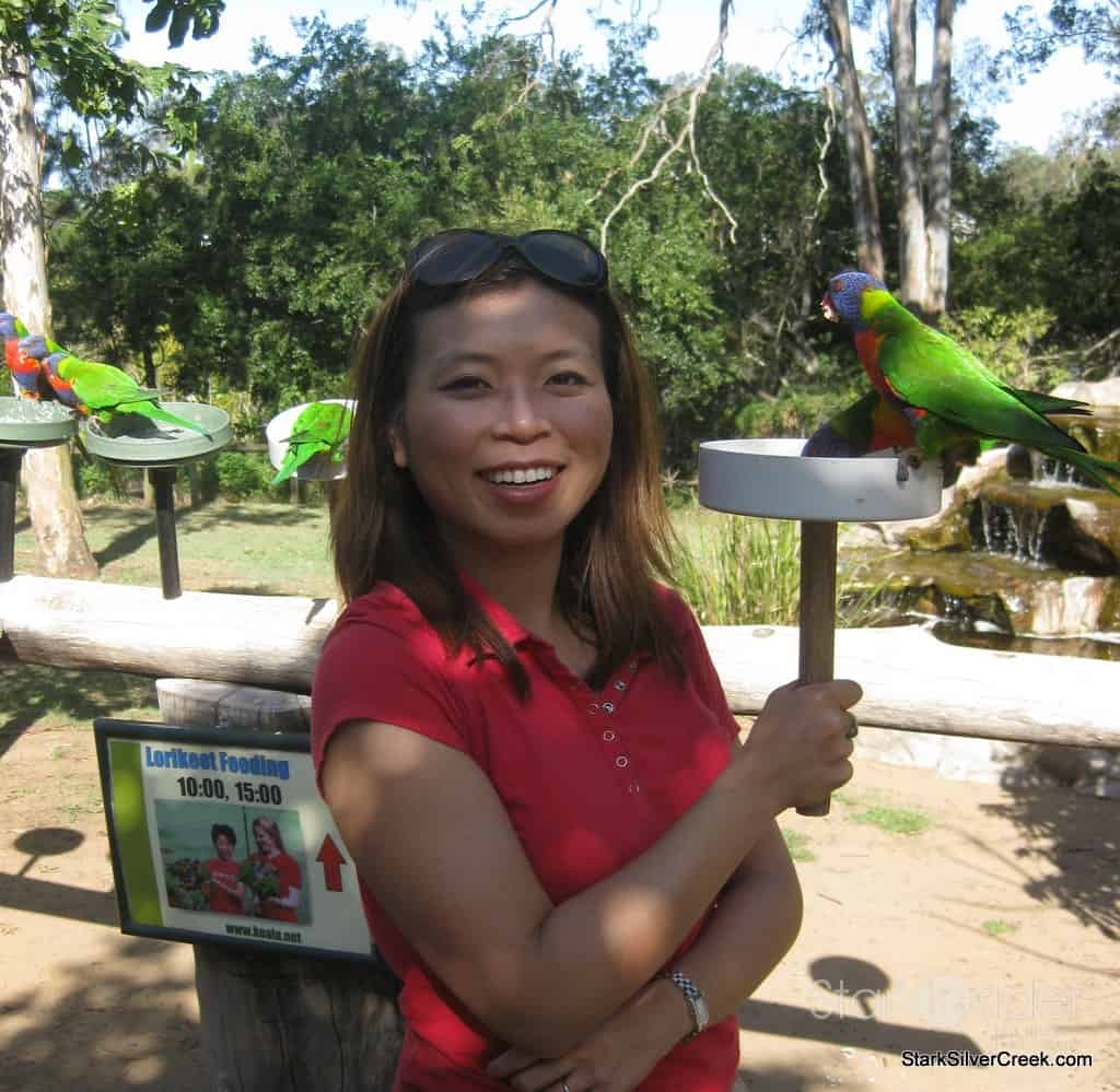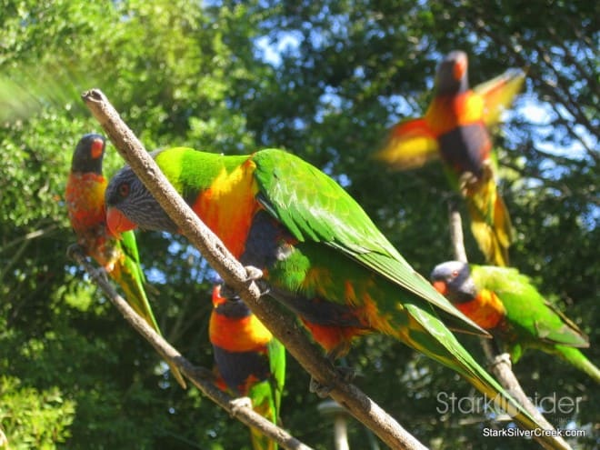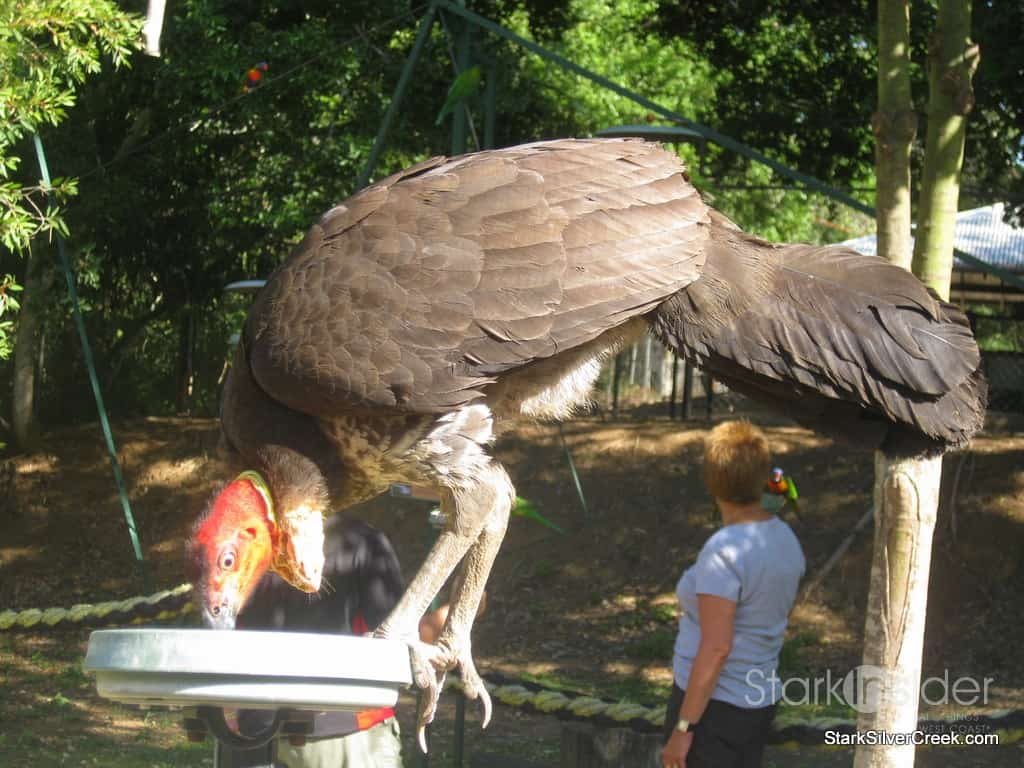 I accidentally stumbled on the Lorikeet feeding and decided to get in on some of the action. Of course, there were a couple of vultures that decided to join in on the feed. They are pretty ugly and scary looking birds up close…I had the same reaction to them as the turkeys that would come from the preserve and walk on our street in our home in San Jose, California. I try not let the way a species look impact my view of them…but it’s hard.
