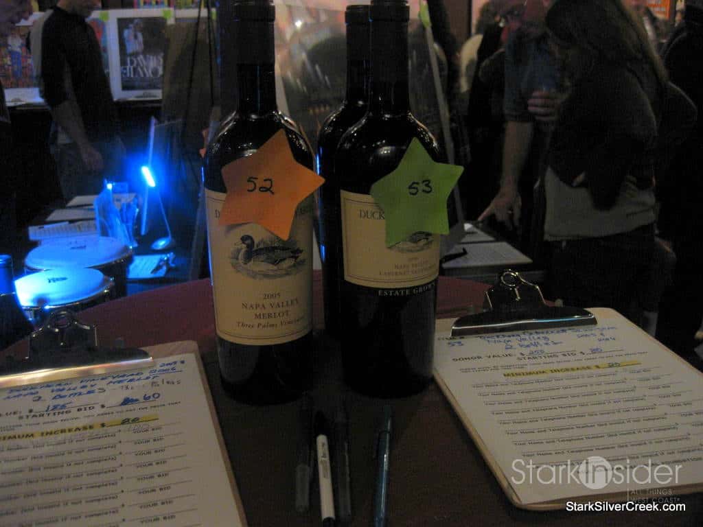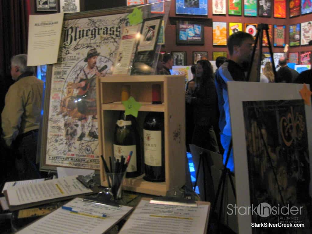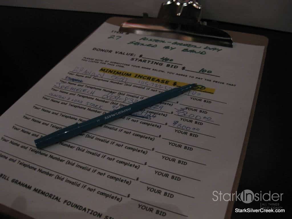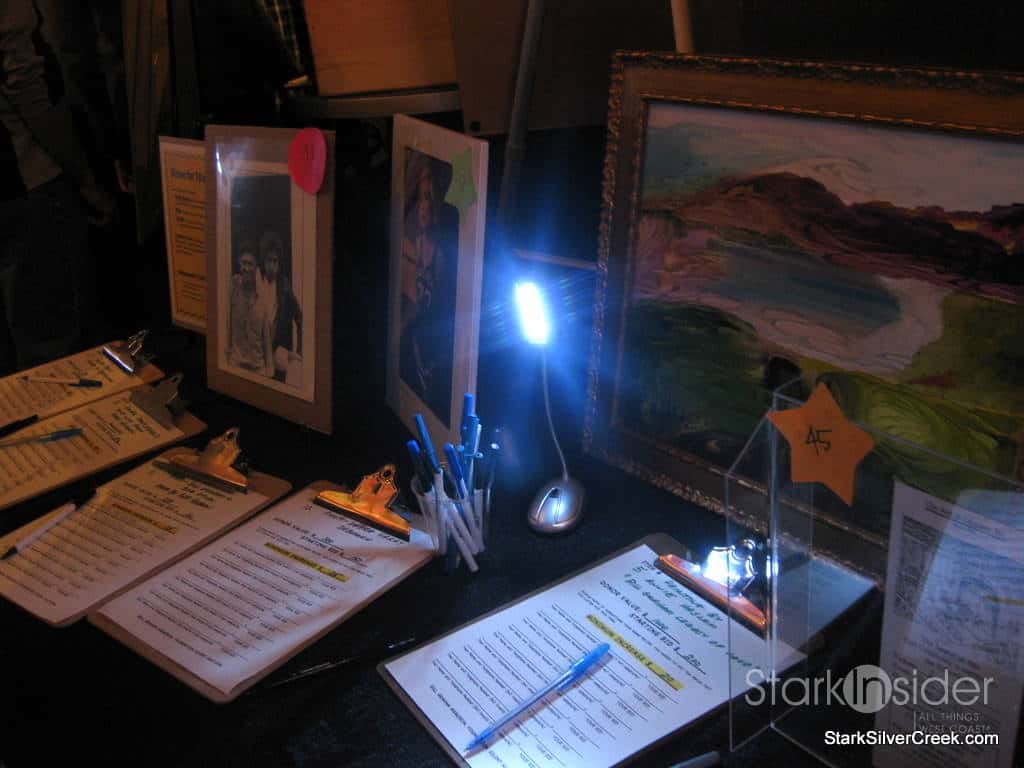 Bids are entered onto forms next to the items. The auction closed at 11:45 pm, about 15 minutes after the end of Cake’s performance.