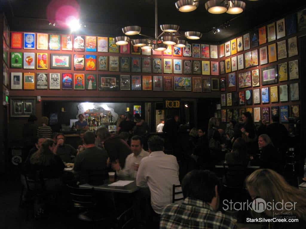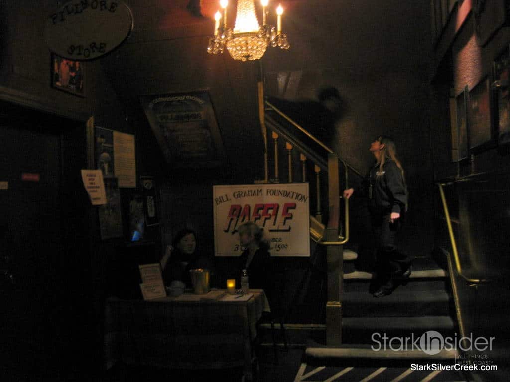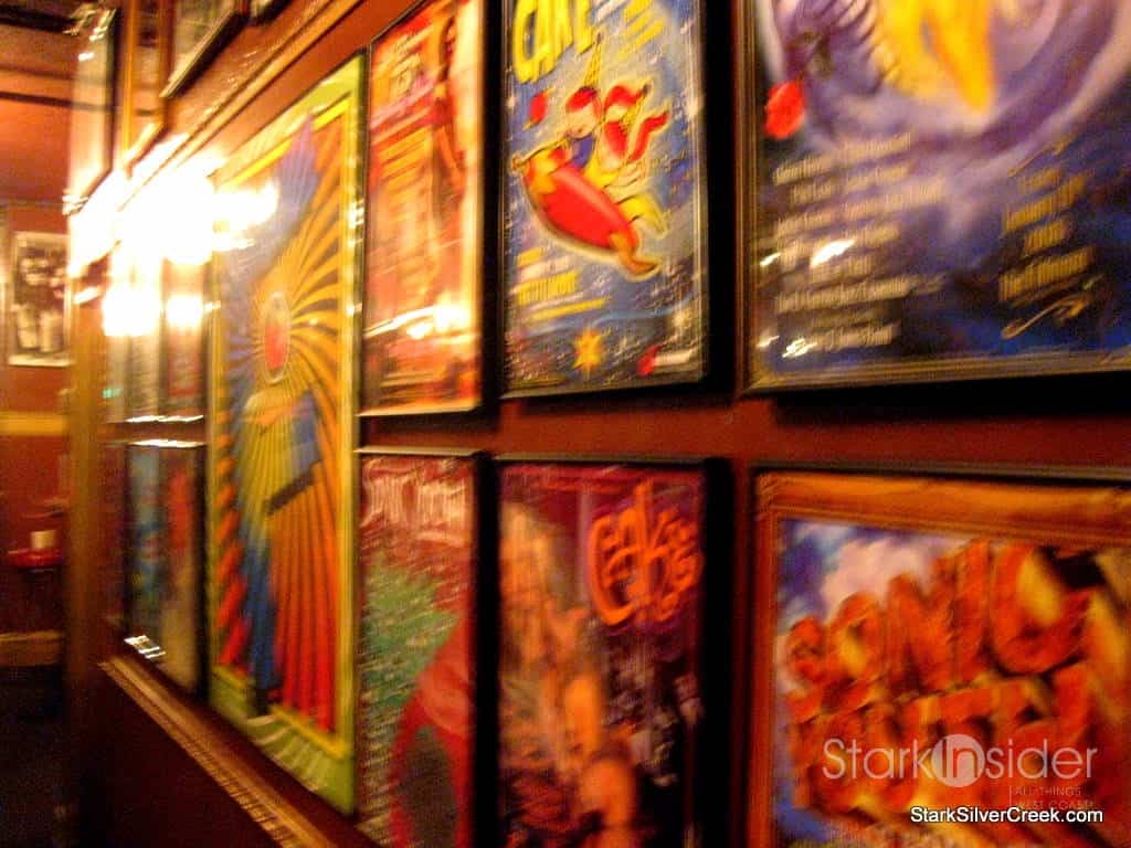 A quick search of my purse, a stamp on my hand as proof I was legally permitted to sip wine and beer and I was led up the stairs into the arteries of The Fillmore. At the top of the stairs there was a box full of apples. Upon checking into Foursquare, I found user tips that at the end of the evening at some events, you can grab an apple and a limited edition poster featuring the performers of the evening. The main feature though of this main hallway are the posters that adorned the walls showcasing the history of this venue. Some notable ones included Gwen Stefani, Bob Dylan, The Cure and Coldplay.