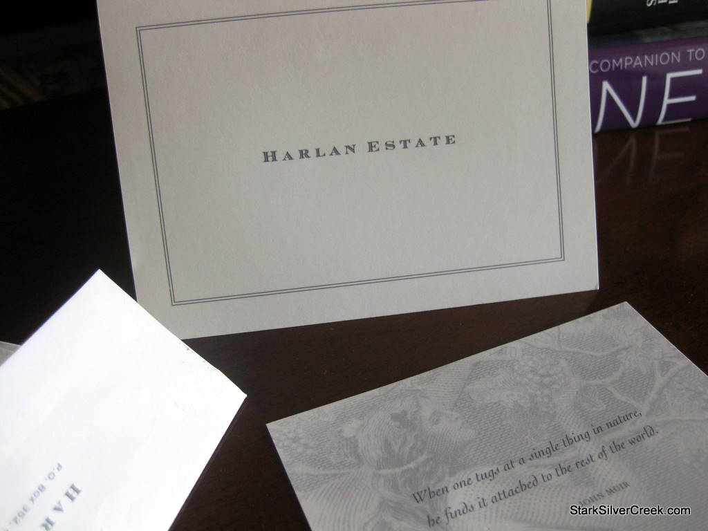 Harlan Estate marketing sometimes reminds me of Porsche mailers. But without the fun gadgets; just a fancy envelope, slick fonts, and impressive card stock. This one arrived with an insert that reads: