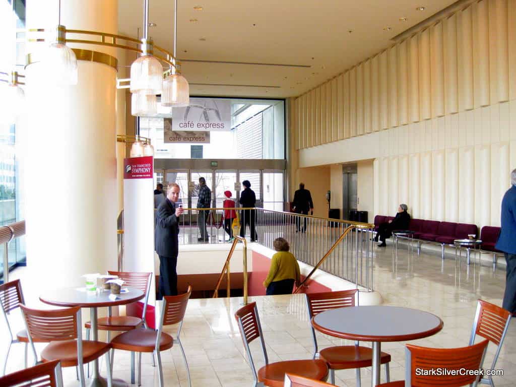 It’s been a while since I’ve attended an event at the San Francisco Symphony and the Davis Symphony Hall was more graceful than I remembered it. The stage was configured into a cozier setting with a semi-circular wood structure suitable for chamber music. Above, transparent sheets helped to mold the sound while reflecting the images of the artists like floating soap bubbles.
