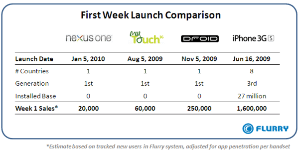 The sales numbers for the new Google Nexus One smartphone were widely reported and debated last week. 20,000 units sold in the first week. Not good, compared to the Motorola Droid (250,000) and iPhone 3Gs (1.6M). It demonstrates the power of brand, and the complexity of retail. Motorola and Apple both have experience in the cell market, and also in retail distribution. Google is taking baby steps, and there will be some growing pains along the way.