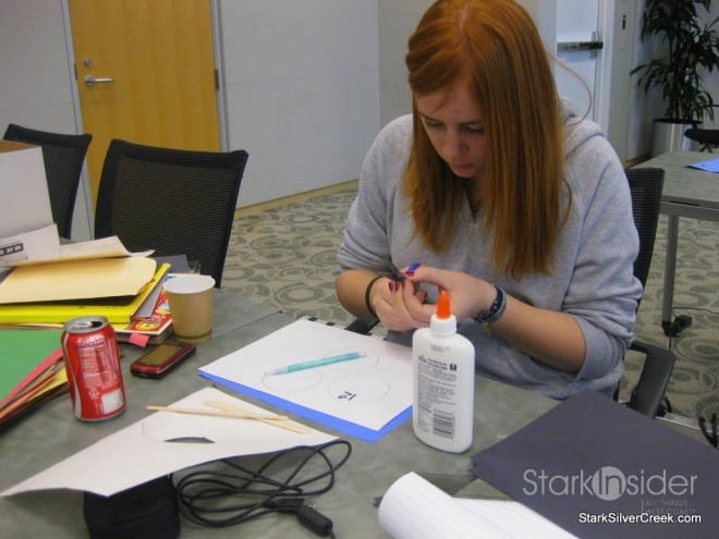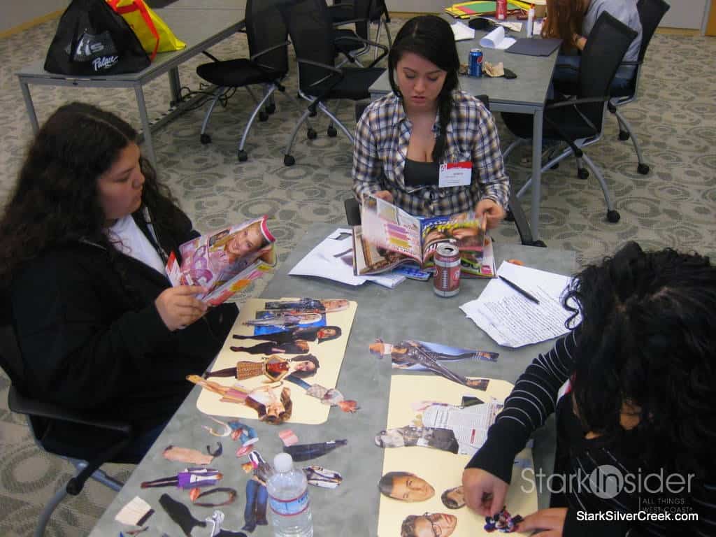 By the time I dropped in to this second session around 11am on Saturday, the group which had started working at 9am was in high gear behind computers, in front of green screens and madly cutting out characters and set objects from magazines. The goal of the entire day is to get enough of the concepts executed so that by the end of the day, each member of each team knew exactly what they needed to work on for the rest of the week on their own before the final Week 3 meeting where all of the content must come together into a cohesive film.