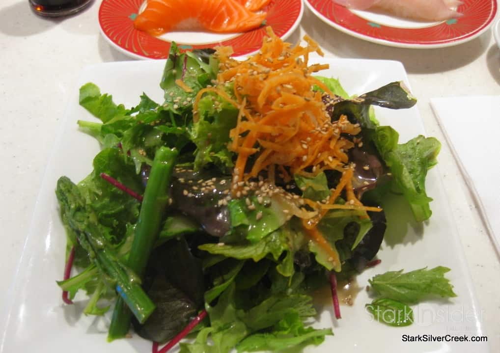 With a ravenous appetite, I started with a salad so that I wouldn’t overdose on sushi and they would have to roll me out like a plump sushi roll. There is a reason why my nick name used to be “sushi weakness”.