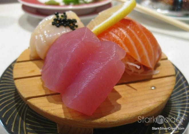 After some nigiri sushi, I decided I was ready for some of the pure stuff. Hanaichi had a good selection of sushi plates and a small sashimi plate caught my eye. It was beautifully arranged and a delight to unwrap each of the raw pieces of fish, place a smear of wasabi and dip into some soy sauce.