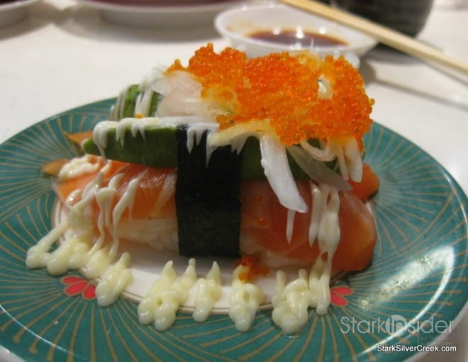 Having tried their traditional sushi and found the fish selection to be very fresh, I decided I wanted to try one of their more creative expressions of sushi. I found the perfect candidate wrapped nicely into two packages on a sushi plate that had my name written all over it. It was a piece of salmon nigiri sushi topped with a mayo-cream sauce, fresh avocado, fish eggs and thinly sliced cabbage for a slight crunchy texture. They were delicious. I find you can enhance the flavor of raw fish by adding texture (fish eggs, rice, cabbage) and enhancing the fattiness of the fish (mayo, avocado). However, it must all be done in the right balance of flavors and proportions or you can easily overwhelm the delicate flavors of the fish. For some that don’t care for raw fish, this may be just fine. For someone who as an obsession for this raw delicacy, I really consider this a crime.