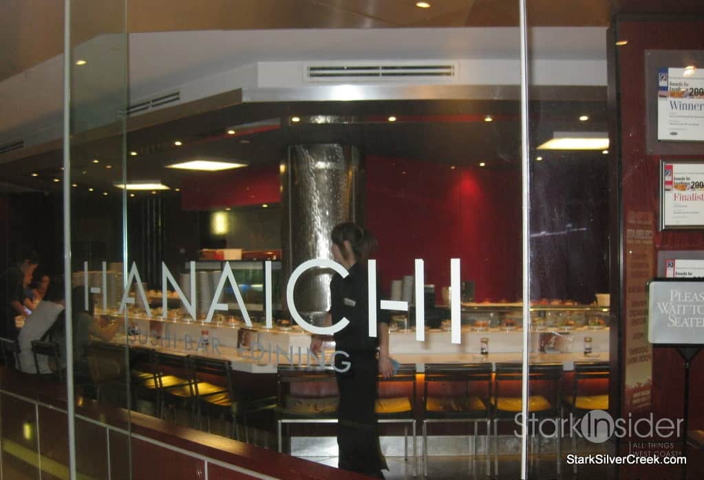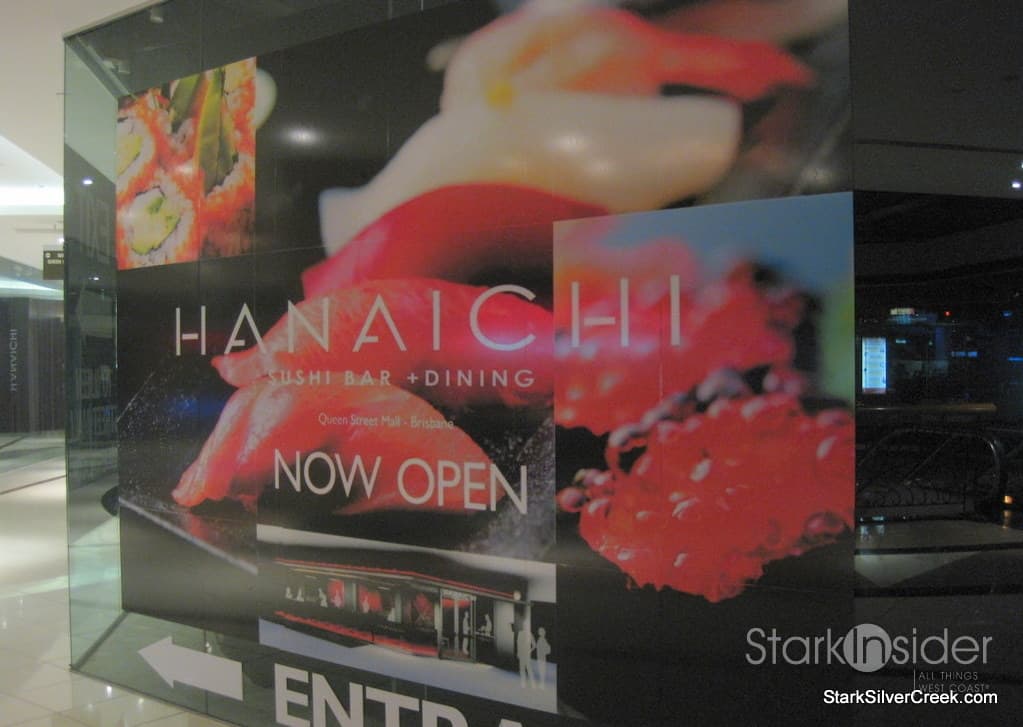 Just as I was about to give up and enter into a fast food sandwich shop, I stumbled across the Wintergarden mall which seemed to have some night-life energy on a warm spring evening. With nothing to lose, I went up a set of escalators along the main promenade as a last attempt to find something appetizing. My curiosity was rewarded as I found a sushi bar oasis at the top of the escalators with the white stone sign that stated, “Hanaichi”.