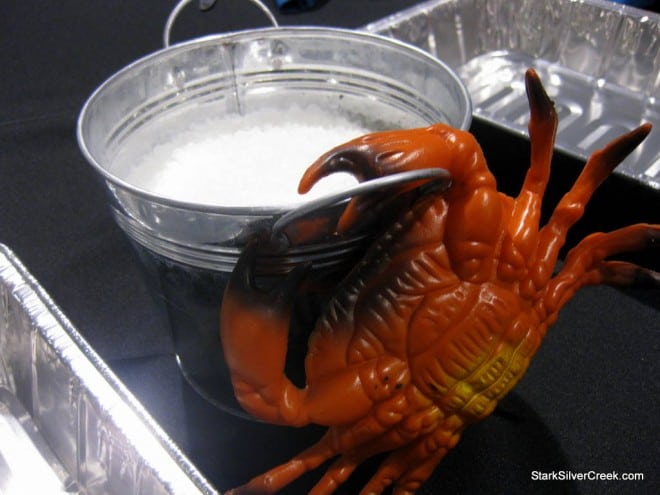 This Silver Creek Sportsplex roller hockey rink was transformed into a large dining area for a crab feed. To one side stretched a long table of hockey paraphernalia which was donated as part of the silent auction. On flat screen televisions all around the rink, the Sharks game was being shown. Fans showed up in hundreds, many with their Sharks gear on, to show their support and to have a great evening.