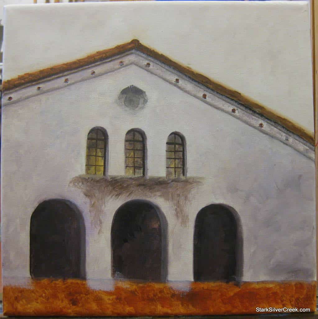 This art class, I was able to add more detail to the three arched windows at the center of the painting. Although overall I am happy with the results of this painting so far, I did learn a couple of things this week which I will try to remember for future painting sessions.