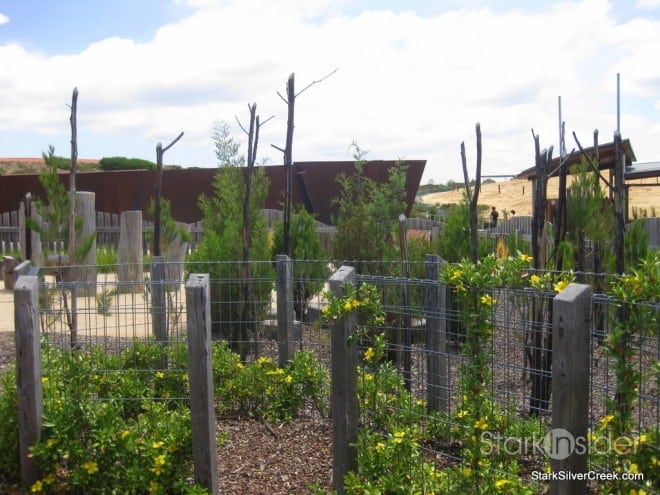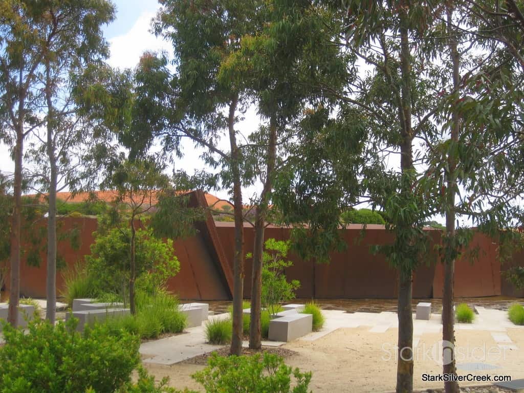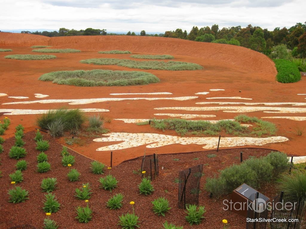 The central attraction is the Red Sand Garden. With its striking color contrasts and geometry, it represents the arid parts of Australia.