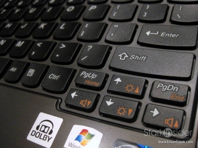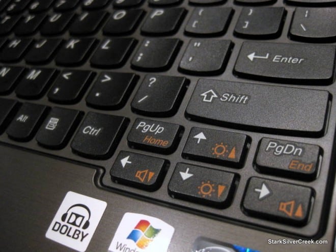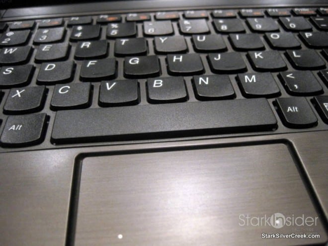 The Lenovo immediately impresses with its svelte dimensions. Compared to the HP and Toshiba it’s approximately 0.5″ less deep. Doesn’t sound like a lot, but it makes a difference. Right away I knew the keyboard was a winner. It’s fabulous and impressive considering the small body containing it.