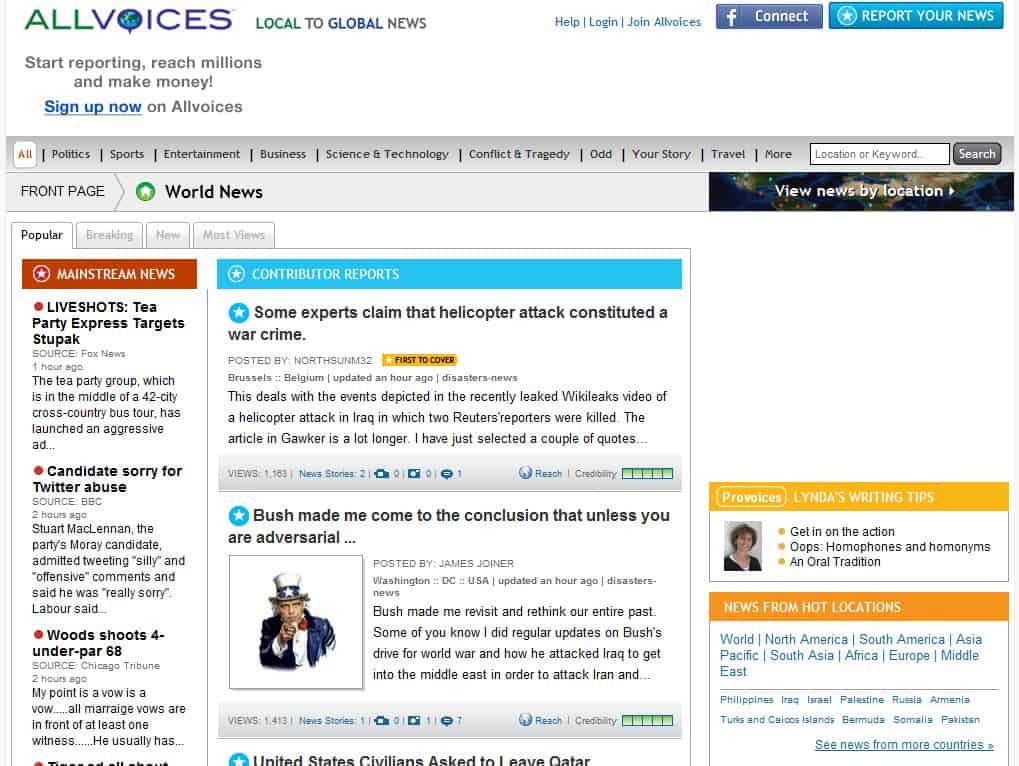 Based out of San Francisco, AllVoices will soon increase coverage in the US as well.