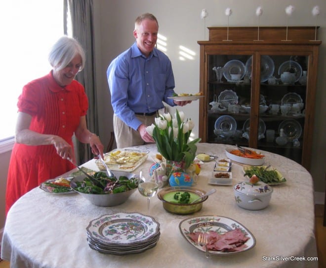 A spread of bunnies and tulips complete a Spring-themed Easter Dinner at the Z's.