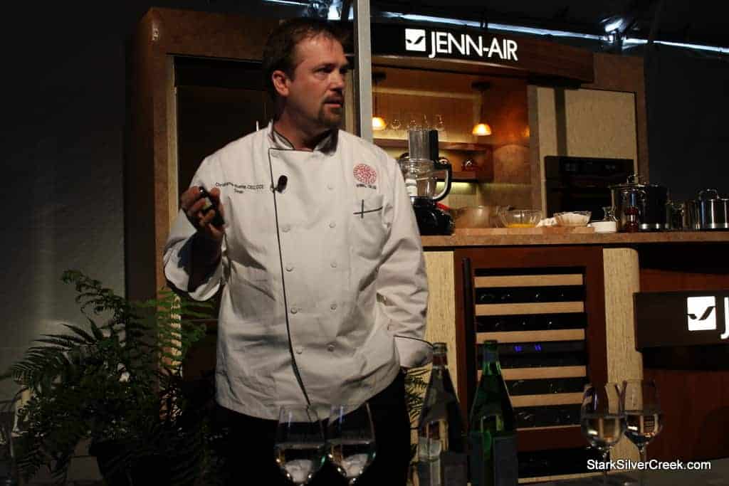 A few minutes into the cooking demonstration and I realized this was not going to be a step-by-step instruction on how you create one of his dishes. Frankly, this was a good thing since all attendees were comfortably seated behind tables with neatly pressed white tablecloths. Not the set up for hands on participation which is the really enjoyable part of a step-by-step instructor led recipe.