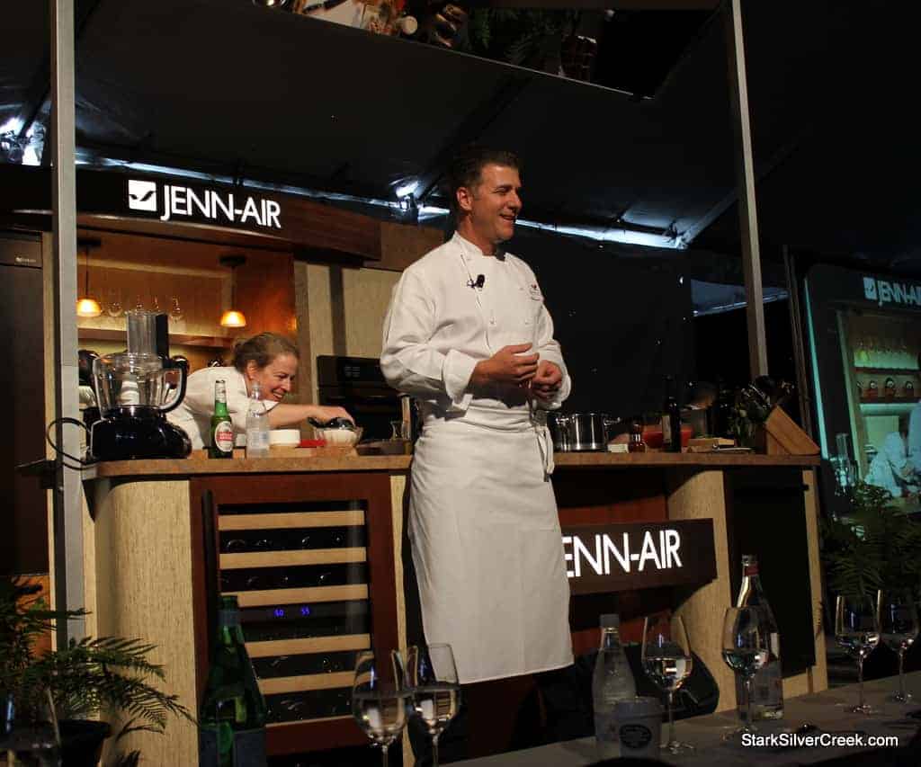 It is hard to believe as Michael moves about on the stage plastered with Jenn-Air branding, telling stories about now, the past, real and imaginary, that I am transported in a blur to different parts of Italy, to his kitchen at home and to a Julia Child show.