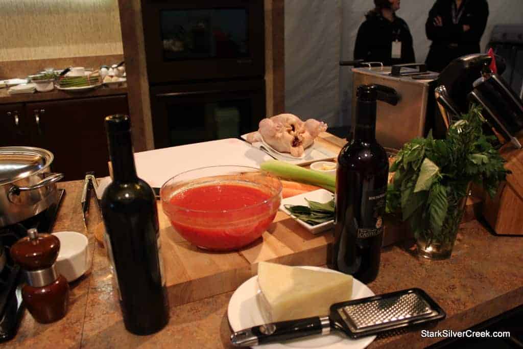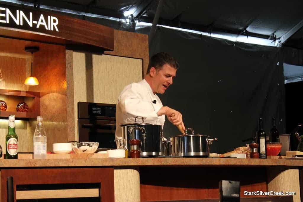 A warm glow emanates from the elevated stage as Michael Chiarello along with several assistants in well pressed chef’s aprons prepare for the cooking demonstration that would shortly commence. Later Michael will refer to this as the “pooh” he was in. It’s the condition when one starts prepping for a cooking demonstration much later than one would like.