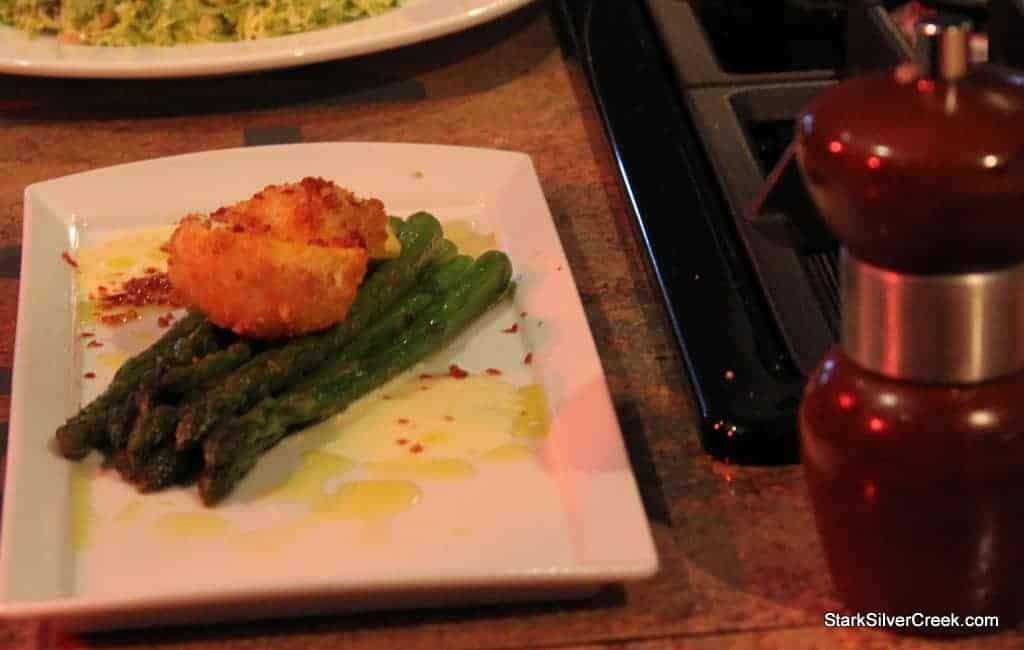I catch flashes of the ricotta gnocchi which is lightly covered in the “Old Bitchy Hen Broth Sauce” and Michael’s interpretation of Seuss’ green eggs and ham. The latter has soft boiled eggs (center still runny) that is covered in Panko bread crumbs and lightly deep fried over a bed of asparagus. It is a mentally and visually tantalizing dish.