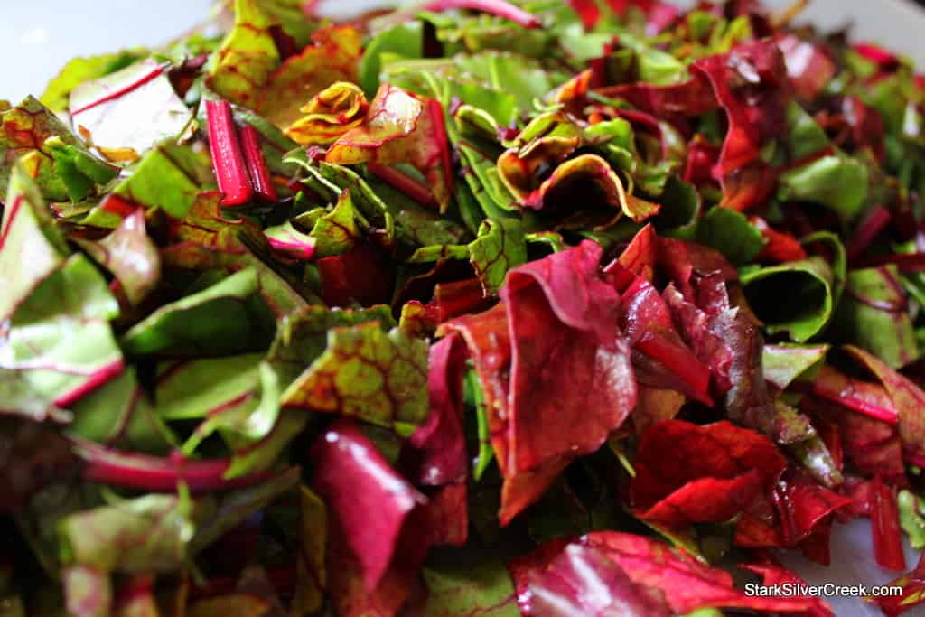 I had some foresight into this predicament a few weeks ago and I had purchased a slow cooker as a possible solution. On Saturday morning, I took most of the greens and even the rutabaga and chopped it up and placed the mix into the slow cooker. Next I poured in some tomato sauce and chicken stock while Clint gave me the look he usually gives me when he is not sure if I am at the brink of brilliance or insanity.