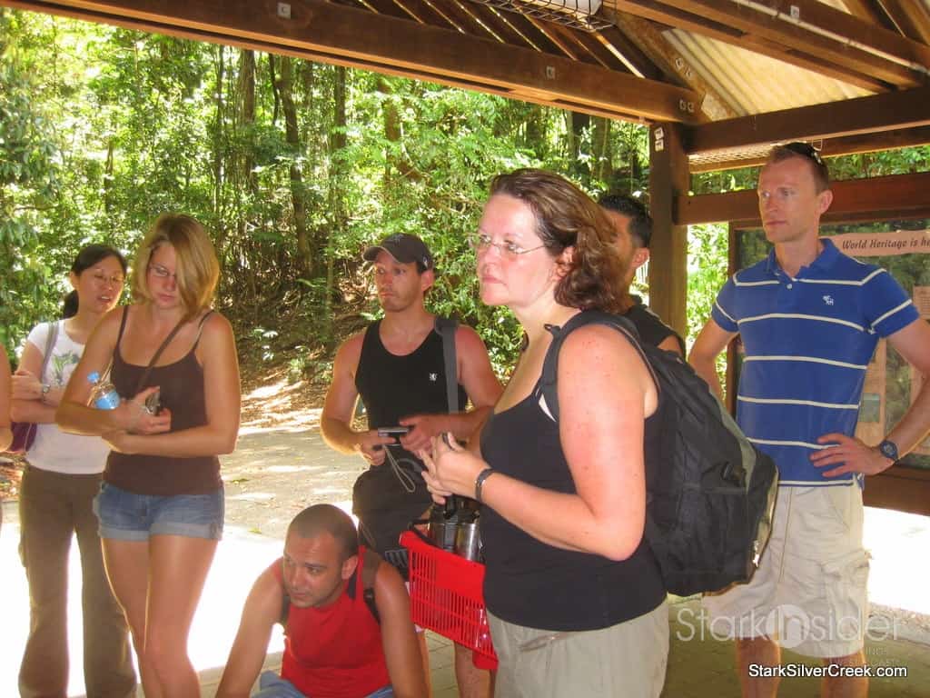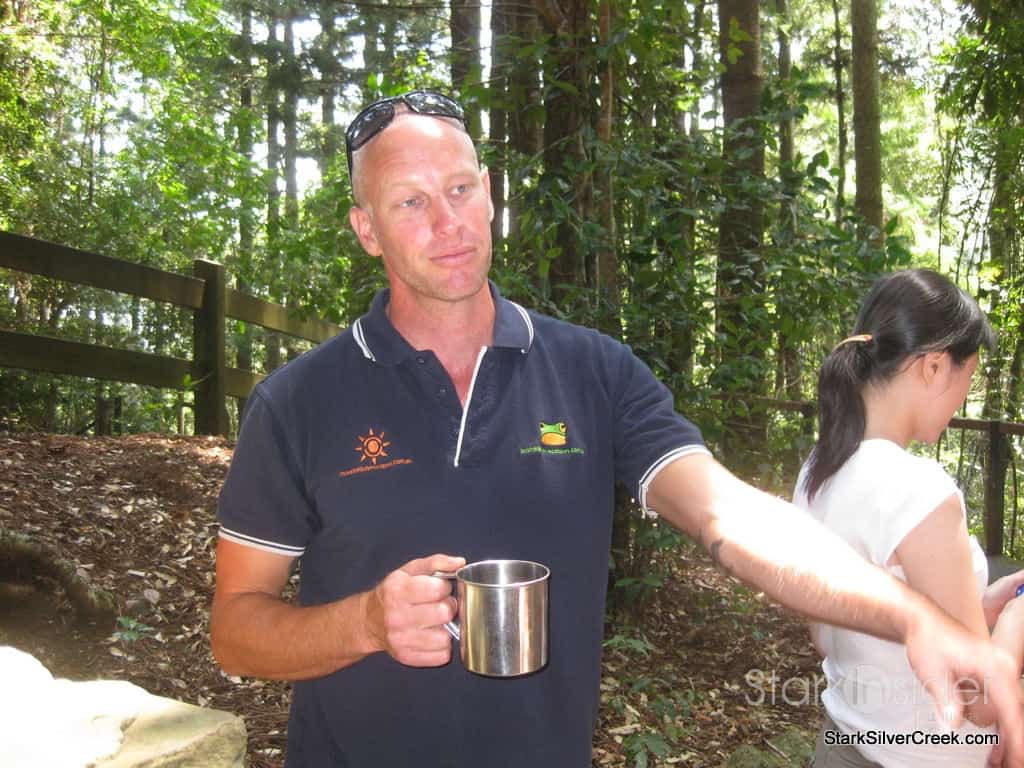 Besides helping us to identify the strange noises the forests…often times mating calls, our tour guide, Nev, also showed us edible plants and berries on the forest ground and bushes. I tried every single piece of fruit that was picked up included some small black apples. What was the most surprising aspect of the experience was how bland the pieces of fruit tasted.