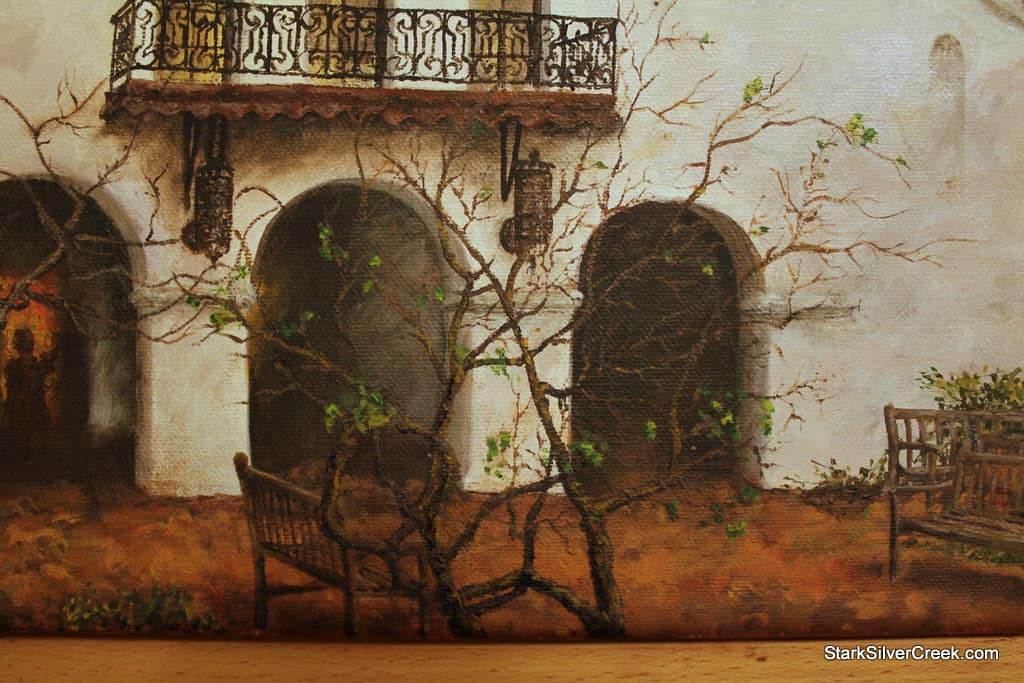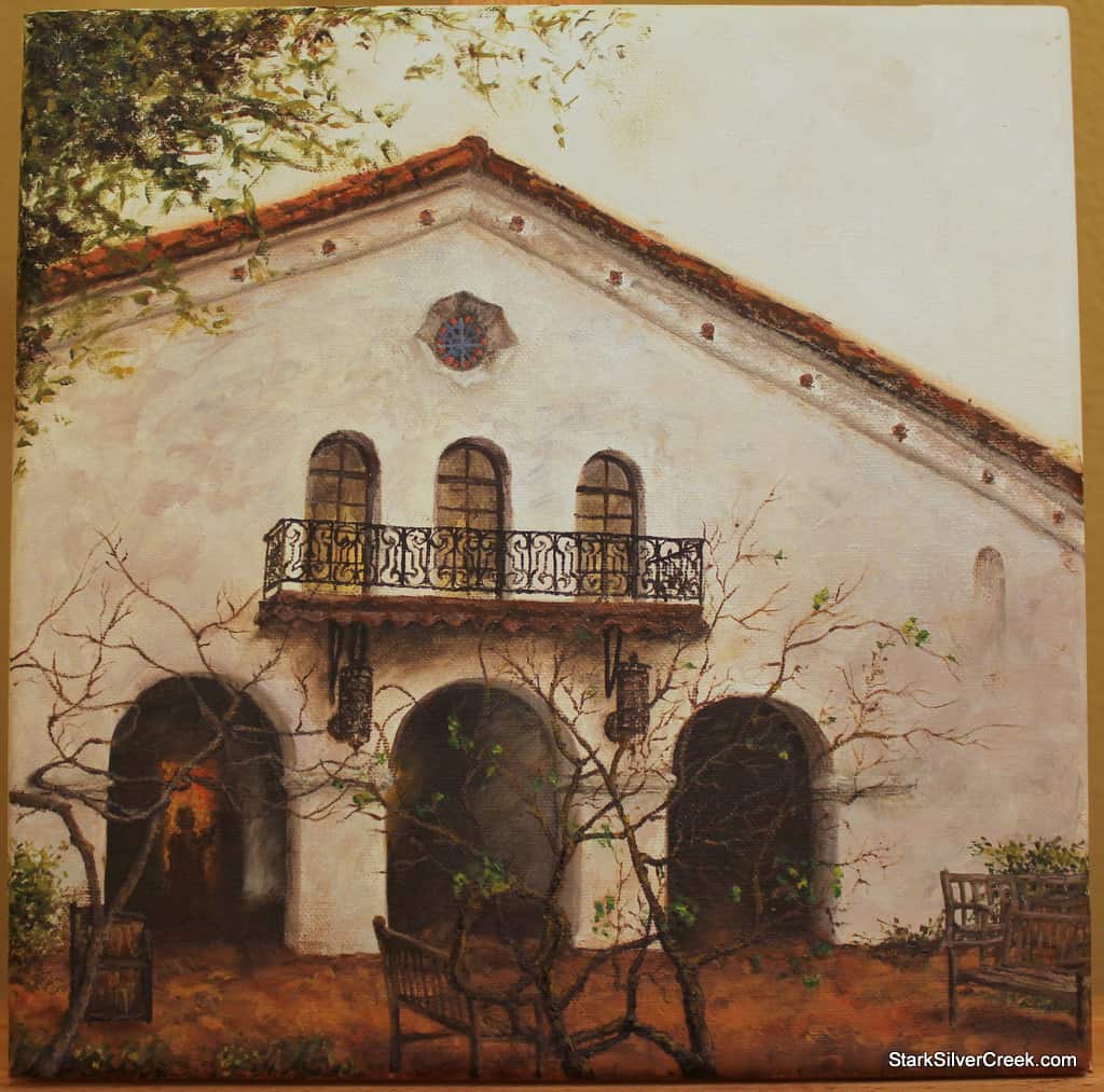 The name of the painting comes from the fact that this is the Lucie Stern Theatre in Palo Alto and the particular photo I took was during a performance of ‘Rabbit Hole’ by Palo Alto Players. Hanging across the balcony railings in the original photo was a banner with the play’s name. I was contemplating whether I should paint the banner into the painting. However, after I completed the railings, I loved the detail so much, I couldn’t bear covering it up so the banner was never hung across the balcony, but the name stuck. A piece of trivia for you dear reader.