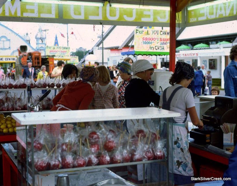 The inspiration for my next painting comes from a photo taken in the summer of 1975 of a candy apple stand at the The Ex in Lansdowne Park in Ottawa, Canada. I choose this photo because I love the bright colors of the candy apples and lemons. I also chose this painting because it features people which I have not painted up until now.