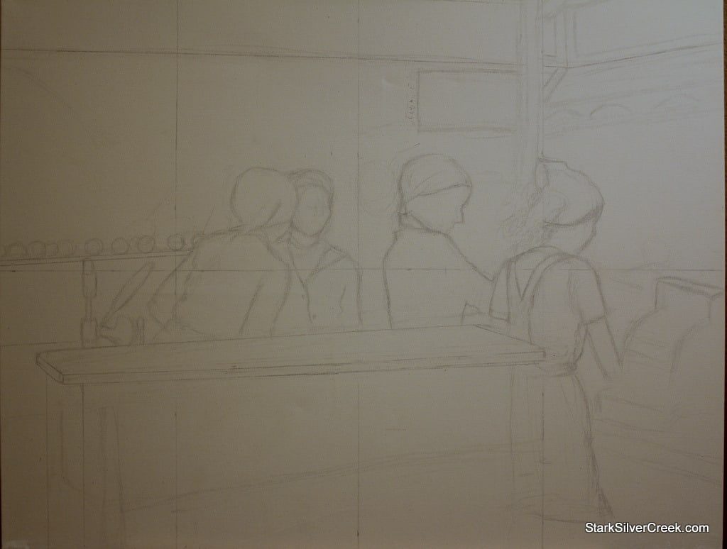The progress on my latest oil painting is slower than I would like . There are several factors contributing to this. Firstly, there have been a number of StarkSilverCreek events that have conflicted with my Saturday oil painting class which I just could not move to another time. Secondly, I have not been disciplined enough these past weeks to carve out at least 1/2 hour each evening to paint. I vow to improve upon this.