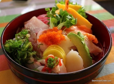 I order the Chirashi sushi ($18.50) and a Hamachi roll to start. Generally when I go to a sushi restaurant I will start with a few selections and then alter my choices and order depending on what I enjoy. Some restaurants are strong on their sashimi and nigiri sushi, others specialize in creative rolls. I have been ordering Chirashi, because like the soft shell crab roll, it gives a quick benchmark on the quality of a sushi restaurant.