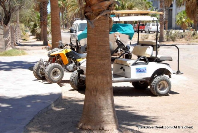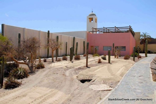 The Inn at Loreto Bay is undergoing some minor changes. The palm trees have been trimmed of the dead branches (hopefully the Paseo trees will follow) and a load of sand is being deployed in the “rock garden” to the right of the reception area. Unfortunately it appears that some of the sand is being dumped into the drainage as the tractor that is deploying the sand appears to have crushed the covers to the ditch. I’ll have to check back to see just what they have done there.