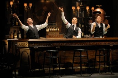 It makes several of the shows I had seen earlier in the week seem shrill by comparison. In place of dialog, a series of vignettes, accompanied by dance numbers, grace the stage, conveying a sense of time and place. As the audience, we’re seated at the back of the cafe watching San Francisco grow up. Times change; from the roaring 20’s to post World War II jubilation to flower power and Vietnam, and then disco and the modernization of human communication. The cafe, with its three small tables, invitingly grand bar and jukebox, remains the same through it all.